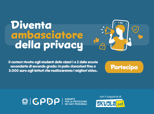 Il kit didattico e il regolamento del contest - con tutte le informazioni utili per partecipare e i dettagli sui requisiti tecnici dei video - sono consultabili su www.gpdp.it/ambasciatoriprivacy e https://ambasciatoriprivacy.it.