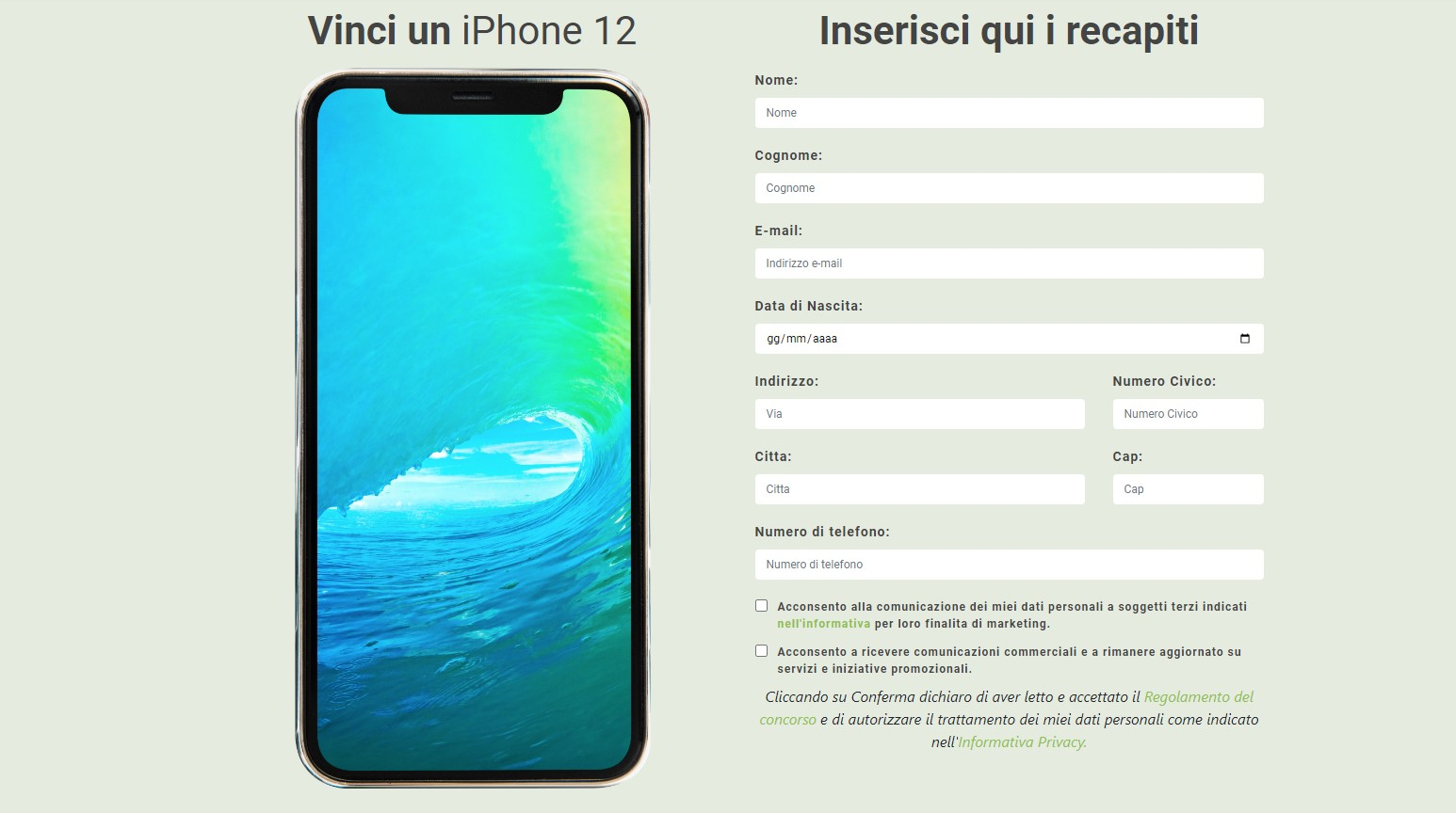 2) con riguardo, invece, al sito internet XX, riconducibile alla società XX, con sede a Londra, è stato accertato che al termine della registrazione dei dati per la partecipazione al concorso a premi sono richiesti all’utente due consensi facoltativi (1 - alla comunicazione a terzi per loro finalità di marketing; 2 - all’invio di comunicazioni commerciali); tuttavia il buon esito della procedura risulta essere subordinato all’accettazione del Regolamento del concorso e all’autorizzazione al trattamento “[…] come indicato nell’informativa privacy”. In assenza di tale accettazione, parrebbe che non sia possibile procedere ulteriormente e, quindi, partecipare alla selezione. Pertanto, secondo tale impostazione, a fronte di due specifici consensi per le distinte attività di trattamento ne viene richiesto uno ulteriore di carattere generale che, tuttavia, sembrerebbe ricomprenderle tutte e porsi quale condizione obbligatoria per poter usufruire del servizio, determinando di fatto una coazione della volontà dell’interessato (v. figura di seguito);