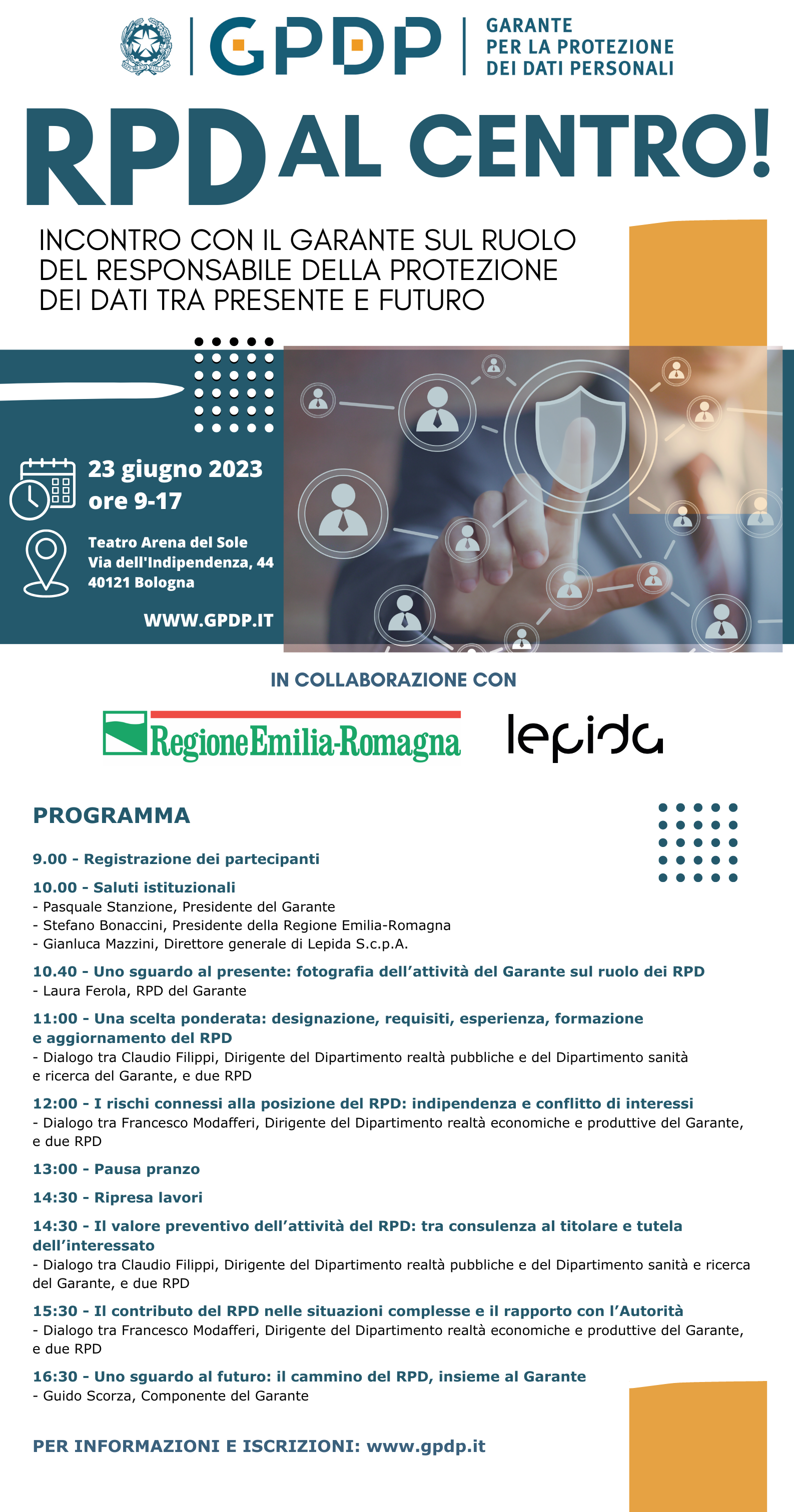 Giornata orientativa e di confronto organizzata dal Garante Privacy a Bologna il 23 giugno 2023
