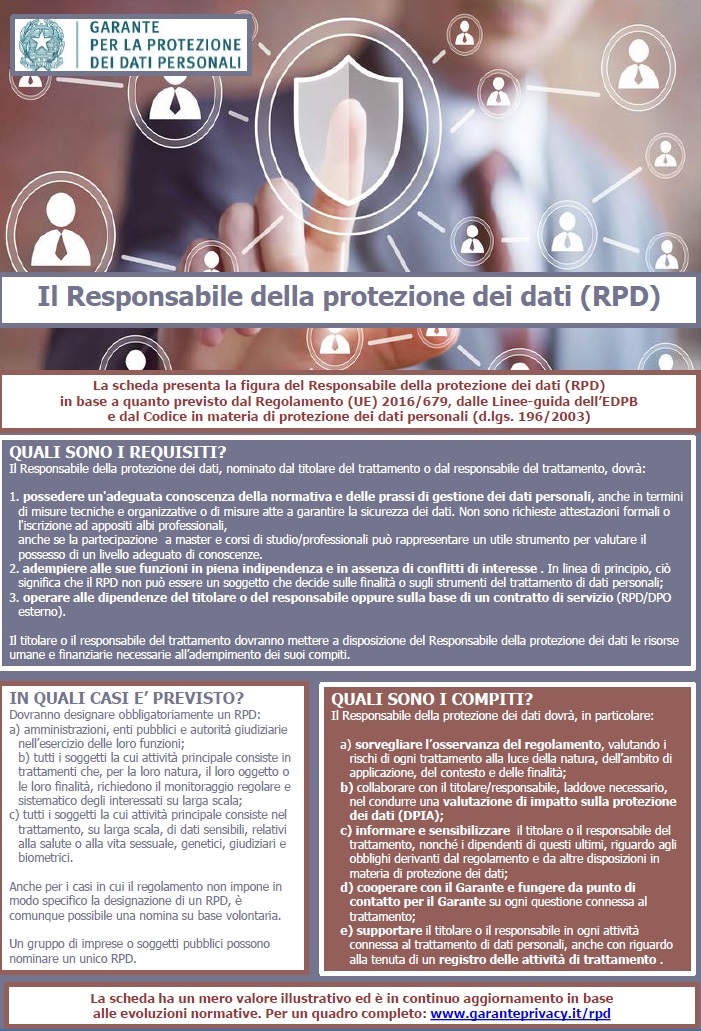 Si ricorda, infatti, che in base all'articolo 39, paragrafo 1, lettera e) del Regolamento, il Responsabile della Protezione dei Dati funge da punto di contatto fra il singolo ente o azienda e il Garante.