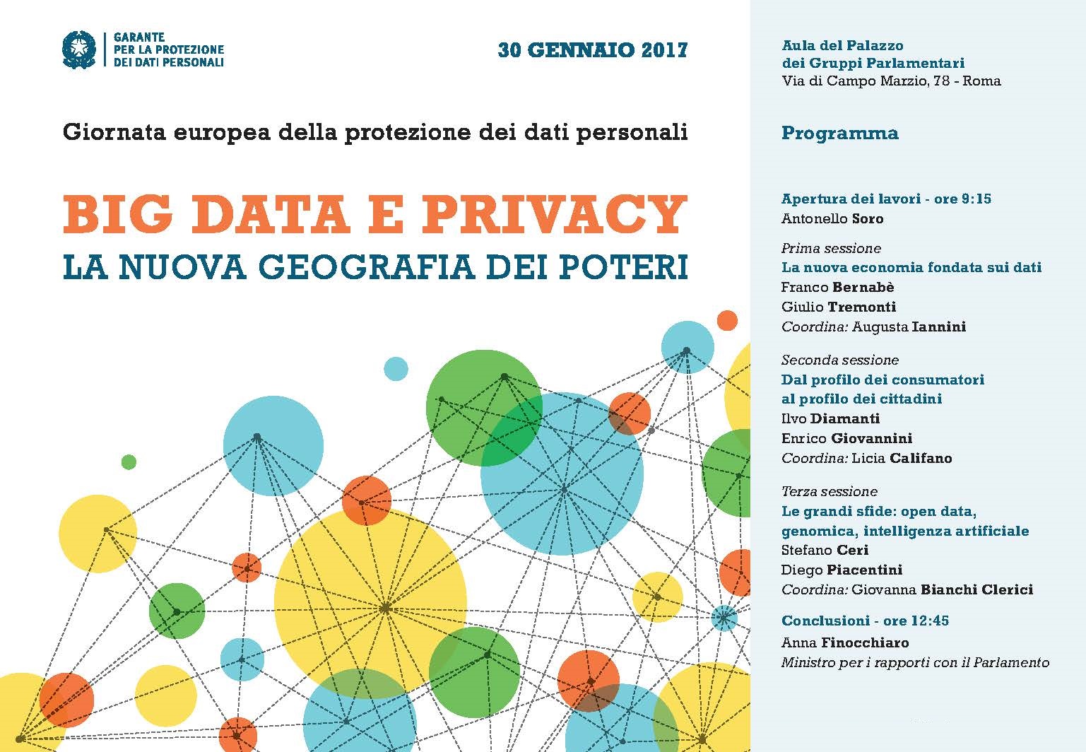"Big Data e Privacy. La nuova geografia dei poteri". Convegno per la Giornata Europea della protezione dei dati personali - 30 gennaio 2017