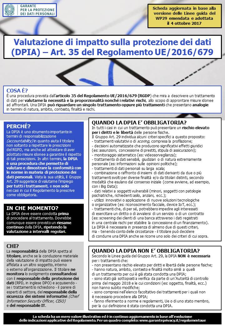 - Valutazione di impatto sulla protezione dei dati (DPIA). Quando effettuarla?