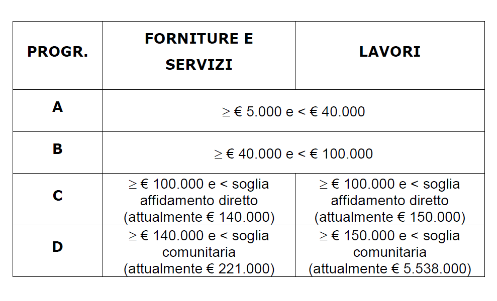 - di sei mesi, per affidamenti superiori ad € 100.000 fino alla soglia dell'affidamento diretto.